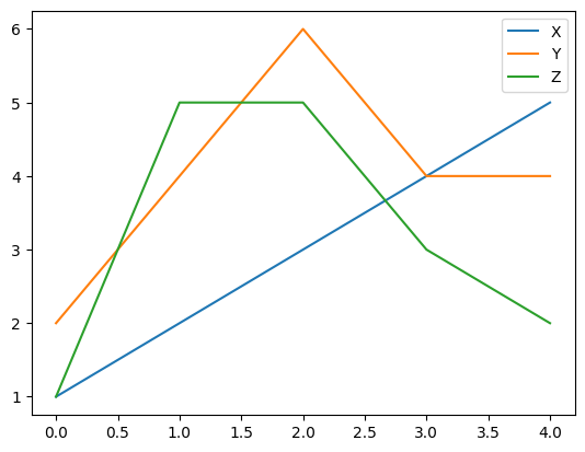 df1=pd.DataFrame(data={'X':[1,2,3,4,5],'Y':[2,4,6,4,4],'Z':[1,5,5,3,2]})